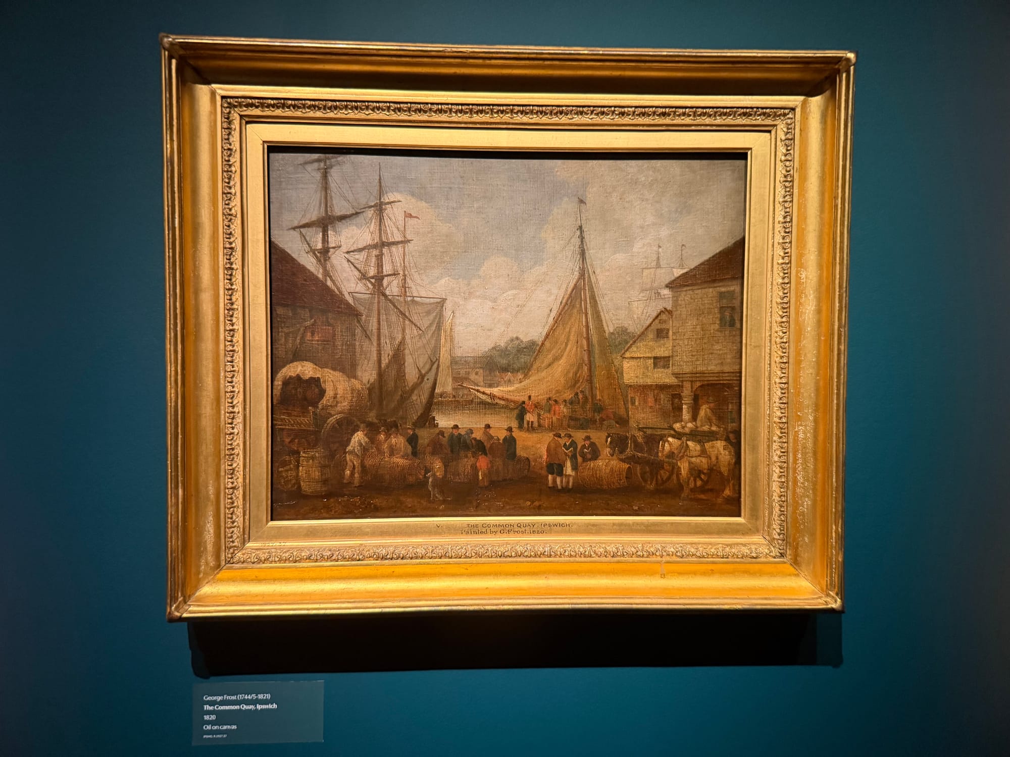Part of what makes this exhibition so particular to this town is the chance to see Ipswich as it looked to the people who painted it. Works by Thomas Gainsborough and George Frost – both of whom Constable deeply admired – show the ordinary life of the town in the 1800s: its streets, its people, its riverbanks. Constable himself regularly travelled to Ipswich to stand in the spots Gainsborough had painted, looking at what the older artist had seen. Walking through the exhibition, you get a rare sense of the town as a living place across time, not just a backdrop.